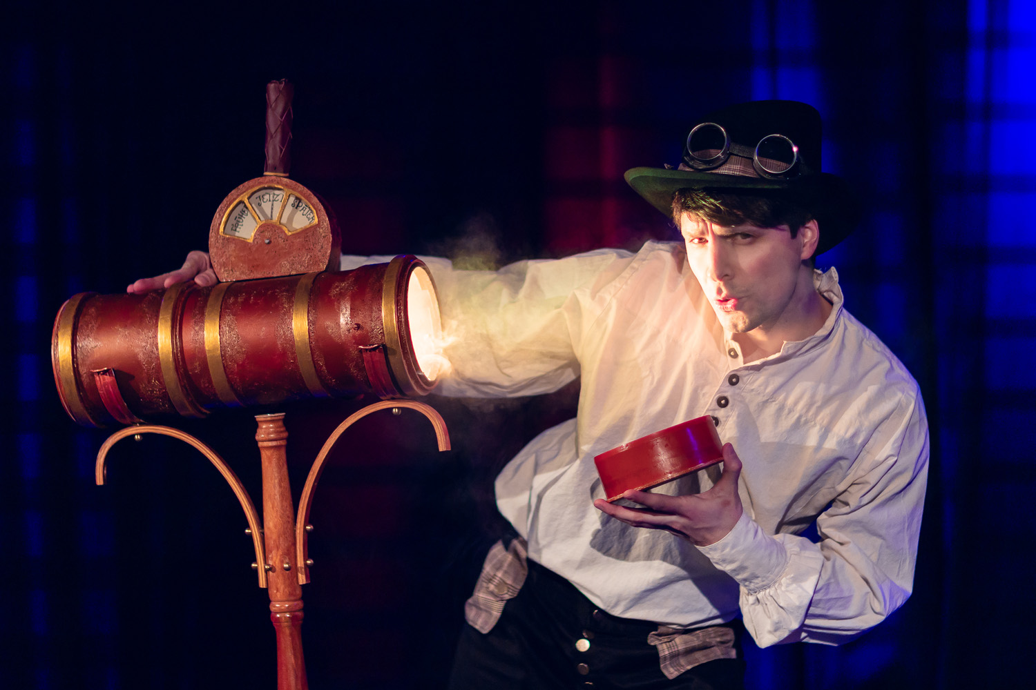Er ist Erfinder einer Zeitmaschine, die direkt dem Steampunk-Universum entsprungen ist. Mit den Mitteln der Artistik wird das gängige Verständnis von Zeit gehörig durcheinander gewirbelt. Ein Hebel wir umgelegt, und schon drehen sich die Diabolos und der Devilstick klackert im Takt.